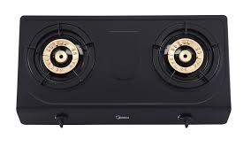 Bếp gas đôi Midea gọn gàng, trang nhã, màu đen nổi bật trong không gian bếp nấu gia đình.
