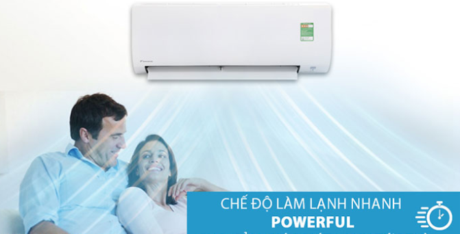 Chức năng làm lạnh nhanh Powerful trên điều hòa Daikin cho phép máy hoạt động với công suất cực đại khi bắt đầu kích hoạt. Sau ít phút, khi đã đạt mức nhiệt mong muốn, máy sẽ tự động chuyển sang chế độ mát dịu, tạo cảm giác thoải mái, dễ chịu, tránh lạnh buốt gây ảnh hưởng đến sức khỏe người dùng.