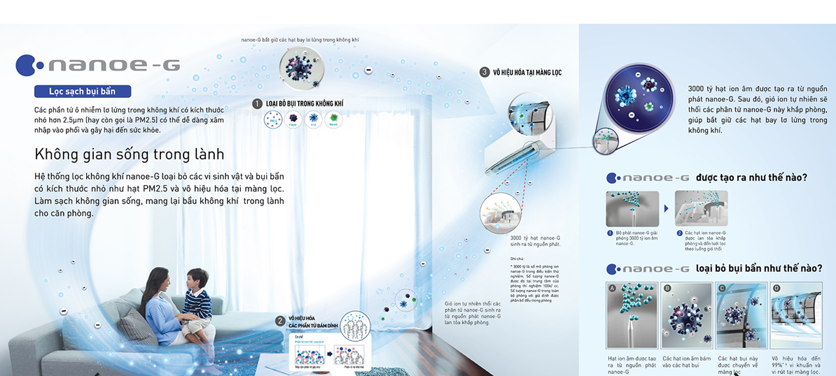 - Nhận thấy vấn đề đảm bảo sức khoẻ cho khách hàng luôn cần đặt lên hàng đầu, cho nên trong năm 209 tất cả các dòng sản phẩm máy điều hoà Panasonic treo tường đều tích hợp sẵn công nghệ Nanoe-G. Và đương nhiên là Nanoe-G hiện tại đã được tích hợp sẵn cả trên những dòng sản phẩm thông thường, đó là sự khác biệt mà Panasonic đã làm được trong năm 209 khi một công nghệ cao cấp vẫn được tích hợp trên các dòng sản phẩm thông thường. Chắc hẳn Panasonic đã hiểu rõ được việc nâng cao giá trị của thương hiệu không nằm ở trên dải sản phẩm đa dạng từ cao cấp cho đến thấp cấp mà nó nằm ở sự quan tâm, dịch vụ chăm sóc cao cấp dành cho mọi đối tượng khách hàng.