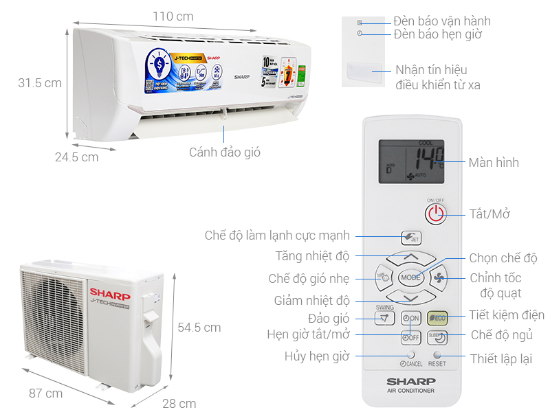 | Tiện ích | Công nghệ J-Tech Inverter, Chế độ Best Sleep, Chế độ Baby Sleep, Cấp 5 hiệu suất năng lượng |