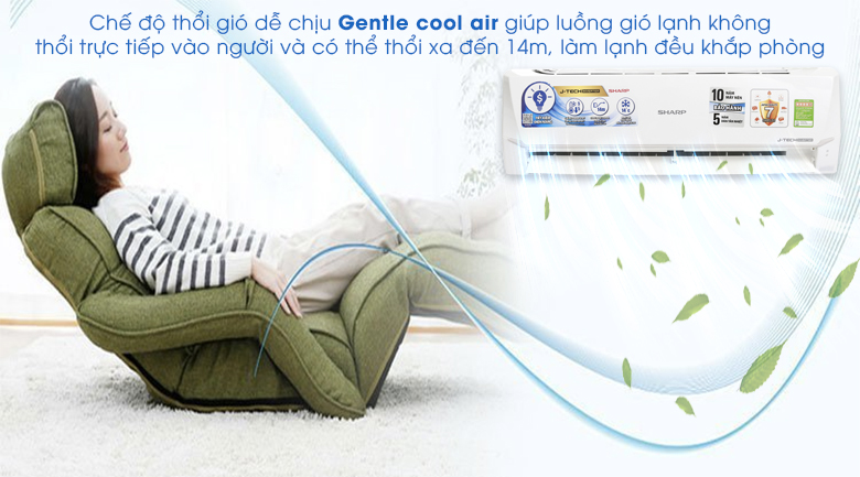 Tránh thổi hơi lạnh trực tiếp vào người tiêu dùng dễ gây cảm lạnh, khô da, nên Sharp đã tích hợp tiện ích thổi gió dễ chịu Gentle Cool Air trên chiếc máy lạnh này. Đảm bảo cho người dùng cảm nhận được hơi lạnh dễ chịu nhất.