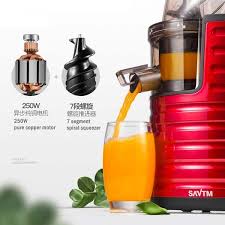 Máy ép chậm SAVTM JE31 có kiểu dáng hiện đại, tinh tế với gam màu đỏ nổi bật tạo một điểm nhấn ấn tượng cho không gian phòng bếp nhà bạn. Phần khoang tiếp nguyên liệu lớn cho phép người dùng không phải cắt miếng trước khi cho vào ép tạo sự tiện lợi tuyệt vời khi sử dụng. Bạn hoàn toàn có thể sử dụng máy ép để chế biến nhiều thức uống thơm ngon, bổ dưỡng cho các thành viên thân yêu trong gia đình cùng thưởng thức.