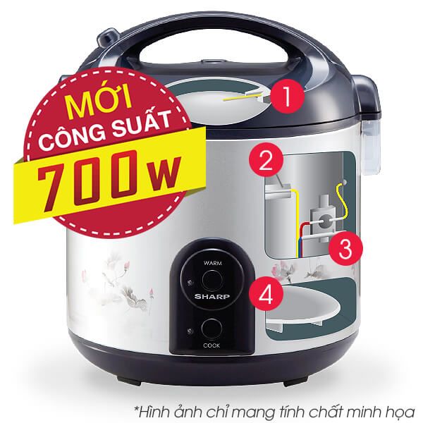 Tùy thuộc vào dung tích nồi cơm điện mà mỗi sản phẩm có công suất khác nhau. Riêng đối với nồi cơm điện có dung tích 1.8 lít, Sharp đã có sự cải tiến công suất ưu việt từ 600W thành 700W nhằm tiết kiệm thời gian cũng như giúp cơm chính đều hơn ngay cả những vùng có điện áp thấp.