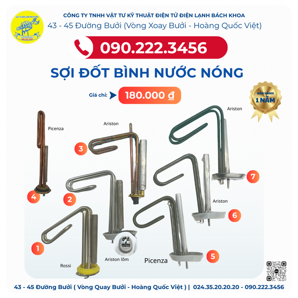 Điện Lạnh Bách Khoa cung cấp đầy đủ các loại sợi đốt cho các thương hiệu bình nóng lạnh phổ biến, đảm bảo phù hợp với mọi model: