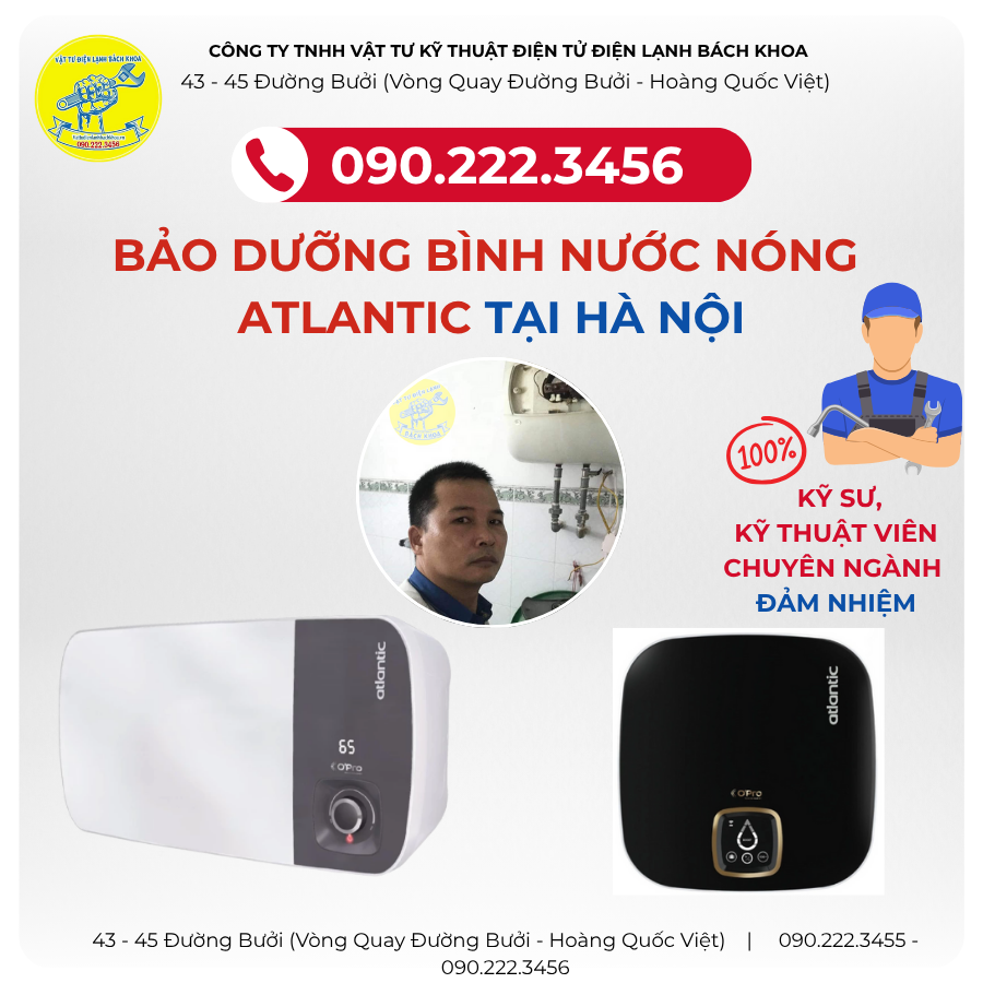 Dịch vụ sửa bình nước nóng Atlantic tại Khu Tập Thể Khương Thượng – Đống Đa, Hà Nội do đội ngũ kỹ sư Bách Khoa đảm nhiệm. Chúng tôi sửa tất cả lỗi bình Atlantic: mất nguồn, không nóng, rò điện, rò nước, hỏng ELCB, thay linh kiện chính hãng, kiểm tra nhanh tại nhà.