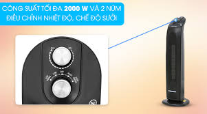Sản phẩm có 2 chế độ sưởi tương ứng với 2 mức công suất 1200W và 2000W để bạn lựa chọn tùy theo nhu cầu sưởi ấm. Ngoài ra, người dùng cũng có thể chọn quay đảo chiều liên tục để hơi ấm được tỏa đều khắp phòng, phù hợp ở những không gian rộng hoặc nhiều người.