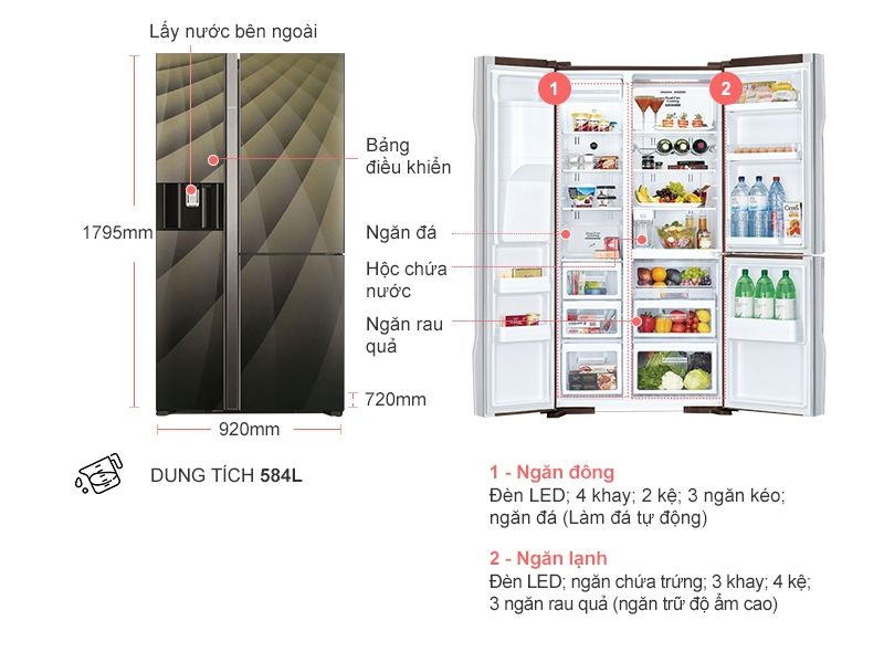 sở hữu cho mình thiết kế kiểu tủ side by side vô cùng bắt mắt với mặt gương vân kim cương phía trước, thêm vào đó tủ còn có các đường nét vô cùng tinh tế tạo vẻ chắc chắn nhưng cũng không kém phần sang trọng, sản phẩm này chắc chắn sẽ tô điểm thêm cho không gian nội thất nhà bạn.