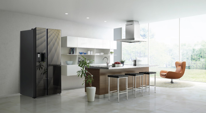 Vận hành bằng cảm biến eco, bảng điều khiển sẽ tự động hiển thị trên bề mặt cửa gương thanh lịch khi phát hiện có người tiến đến gần khu vực tủ lạnh