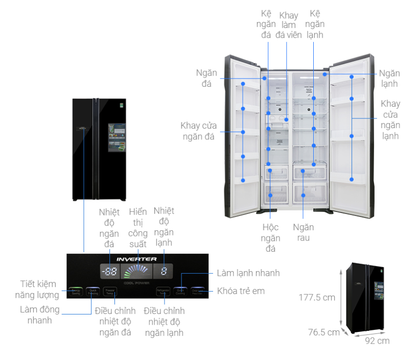 Được thiết kế với dung tích lên đến 605 lít, giúp bạn có thể lưu trữ thực phẩm với khối lượng lớn trong nhiều ngày. Tủ lạnh này có thể đáp ứng tốt nhu cầu cho gia đình có trên 5 thành viên sử dụng.